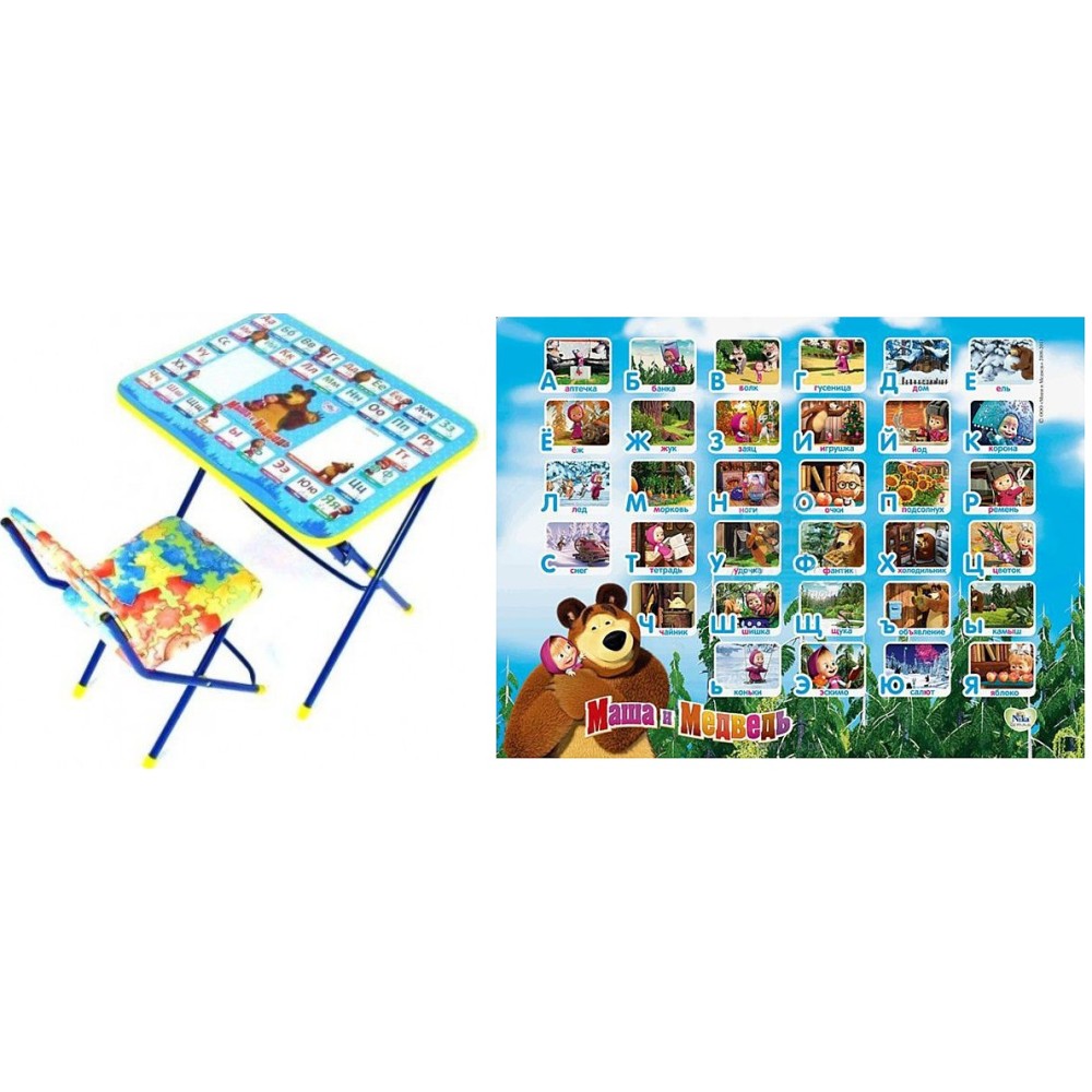 Nika. Комплект КП 1/КУ 1 "Азбука 1 Познайка Маша и Медведь" Стол+стул пластм. (синий)