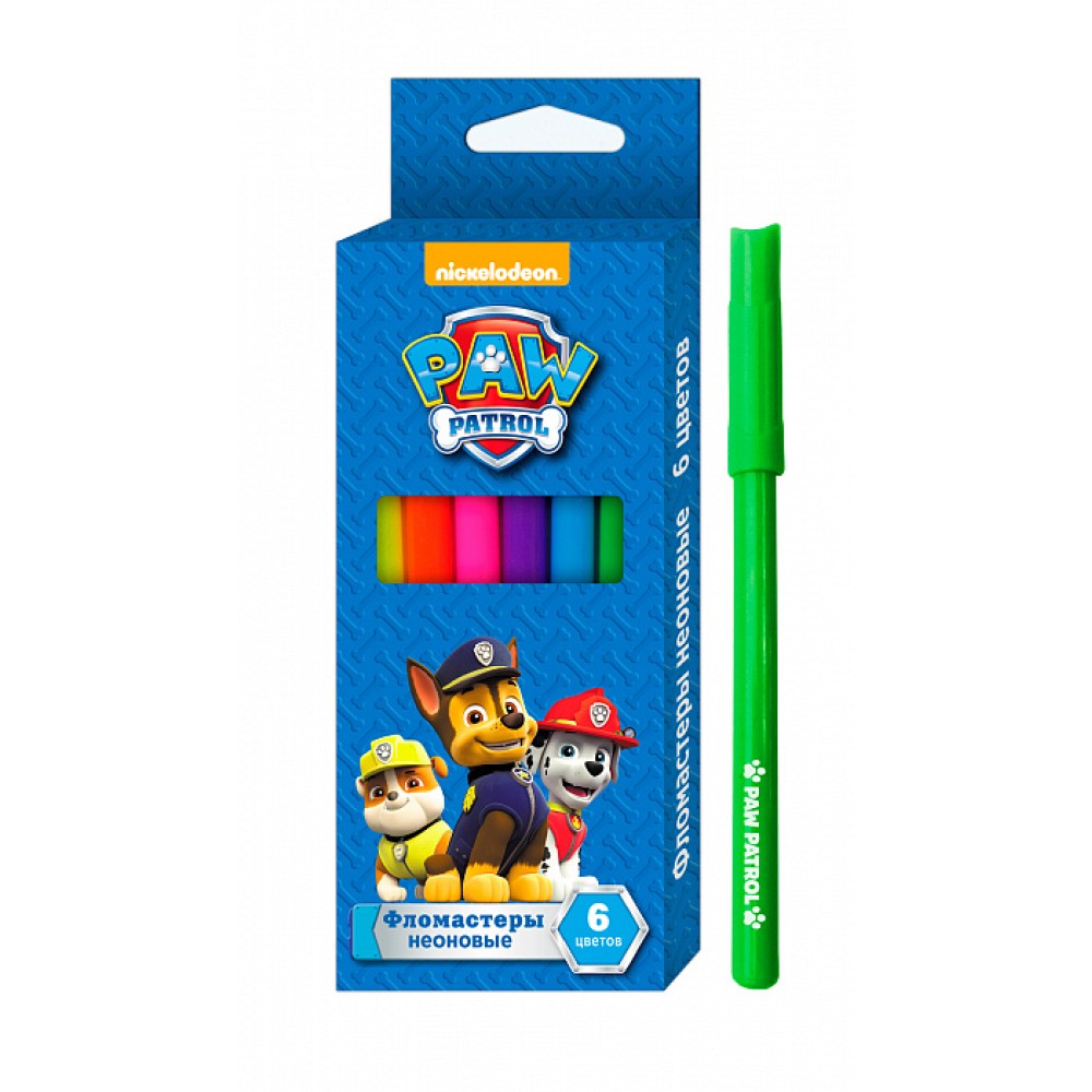 Щенячий патруль. Фломастеры неон 6 цветов арт.33988