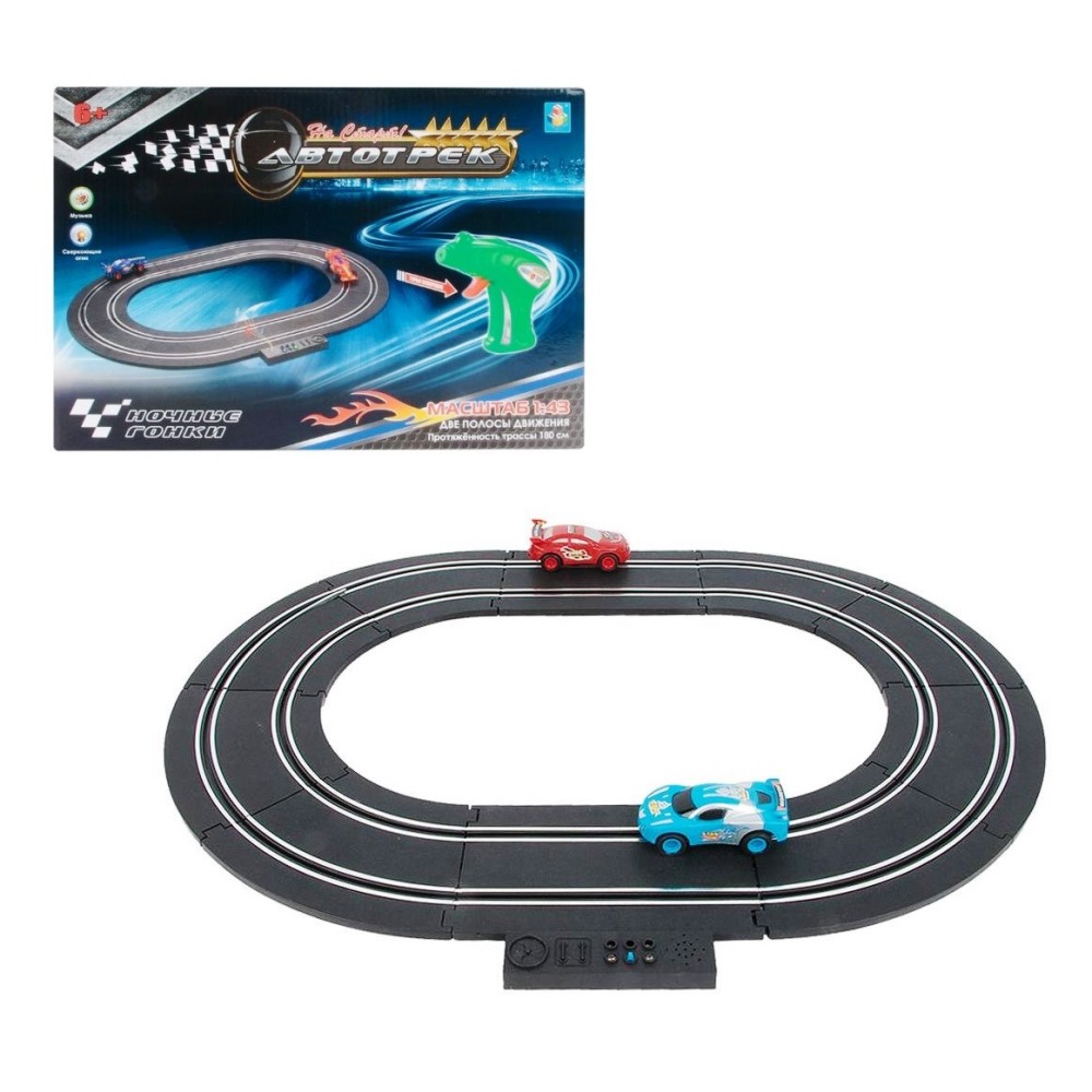 Автотрек с 2 машинками, 2 полосы движения, трасса 180 см, 34х24х5 см арт.Т10183