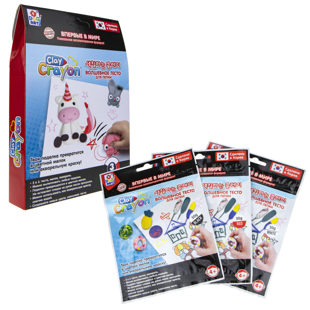 Clay Crayon. Набор тесто-мелков "Единорог" (3 цвета по 30 гр) в кор. 13,9x19x3 см арт.Т19013