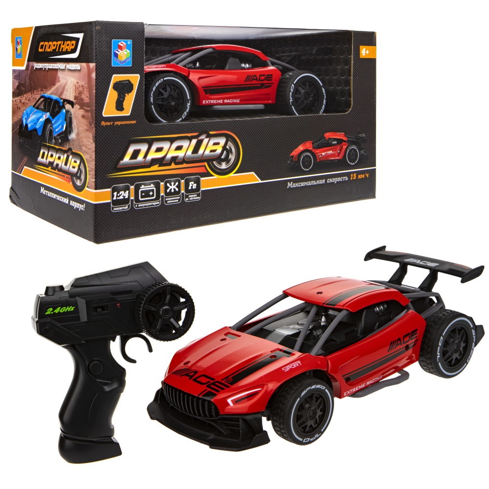 Драйв.Т21637 Машина на р/у "Спорткар" 1:24 жёлтая/красная, металл,