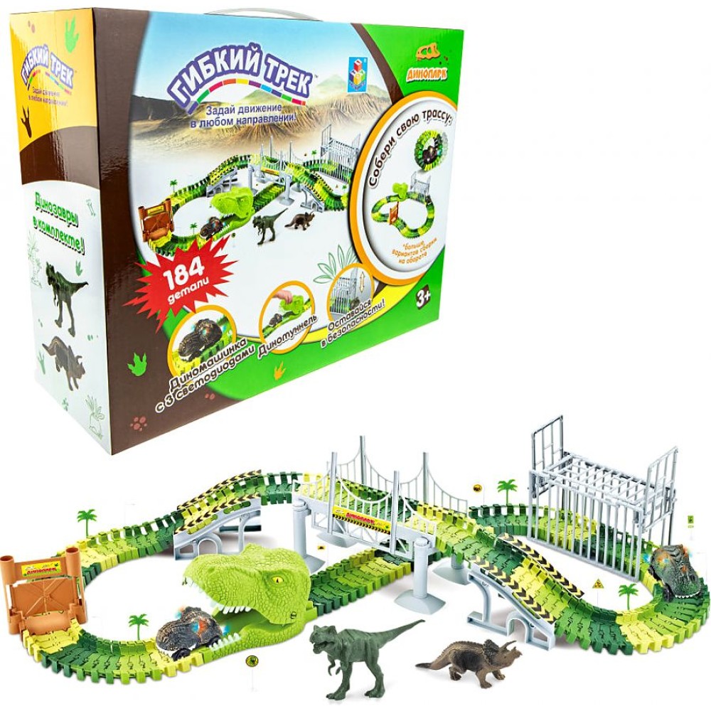 Гибкий трек Т20859 "Динопарк" 165 дет, динотуннель, ворота, мост, 2 динозавра