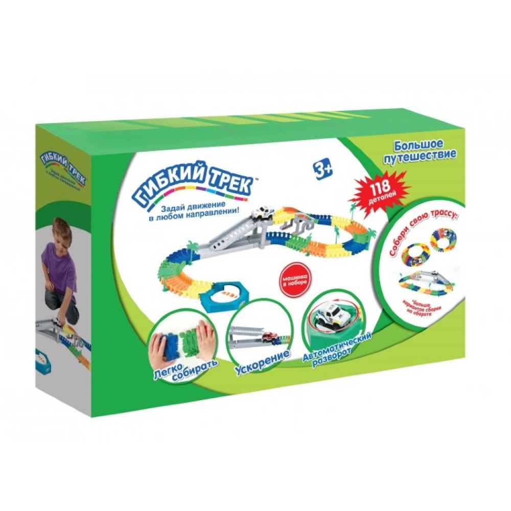 Гибкий трек Т59313 "Большое путешествие" 118 дет.,разворот,спуск,машинка 40*7*24 см.