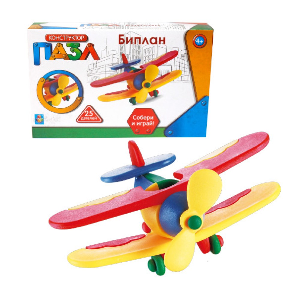 Конструктор-пазл "Биплан" 25 дет.,,кор.16х11х4 см, арт.Т59948