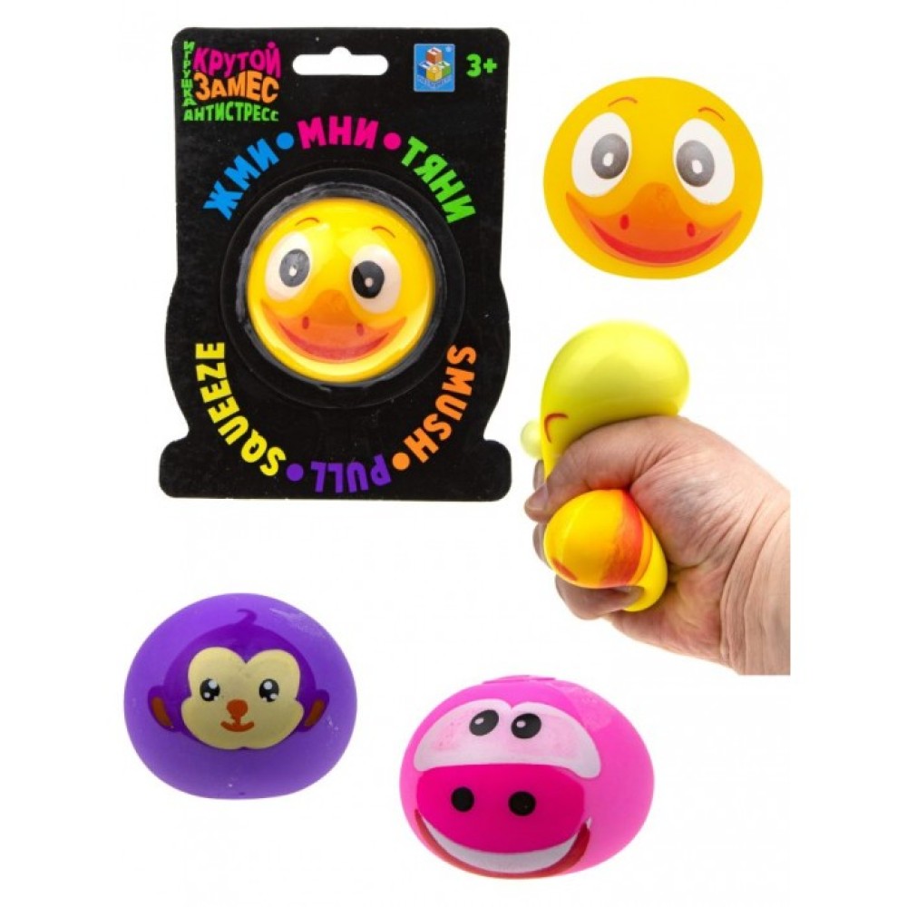 Крутой замес. Игрушка антистресс "Шар рожицы" (утка, обезьяна, свинка) 6 см, блистер арт.Т20332