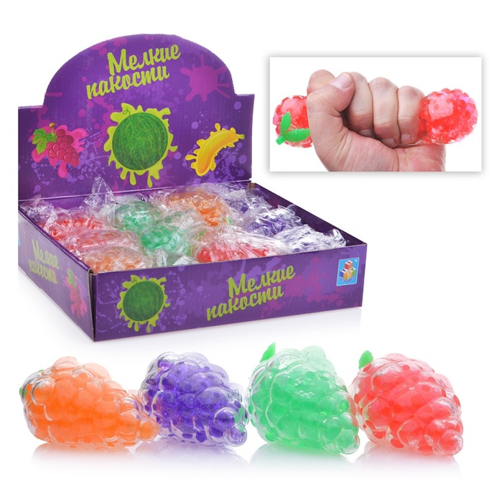 Лизуны Т12460 Мелкие пакости, жмяка с шариками - виноград/клубника 9см, в д/боксе