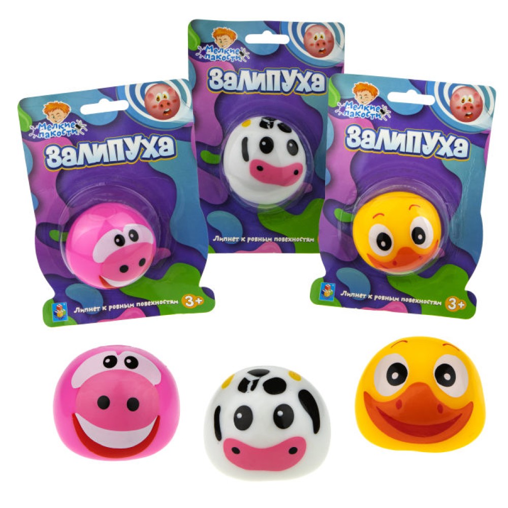 Мелкие пакости. Жмяка "Залипуха" липнет к ровным поверхностям (корова, свинья, утка) 6см, арт.Т17003