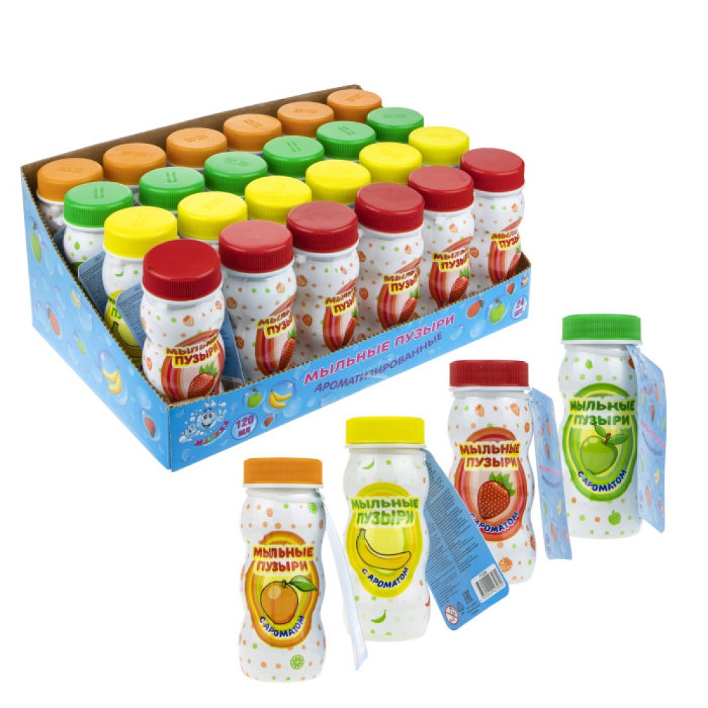 Мы-шарики.Т17230 Мыльные пузыри с ароматом. в термопленке 120мл (Клубника , банан, апельсин, яблоко)