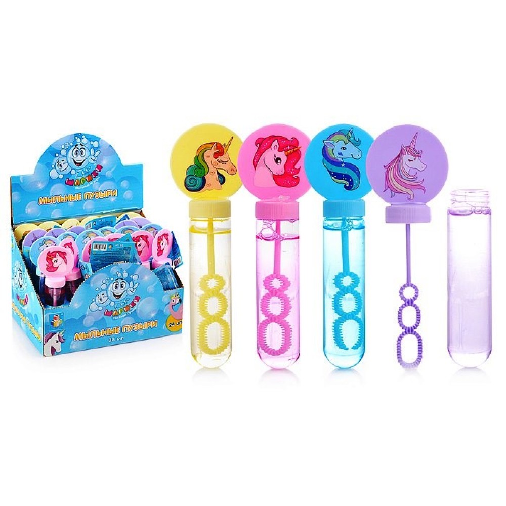 Мы-шарики.Т17255 Мыльные пузыри колба с кругляшом "Единорог" 38 мл (поштучно)(в боксе 24 шт)