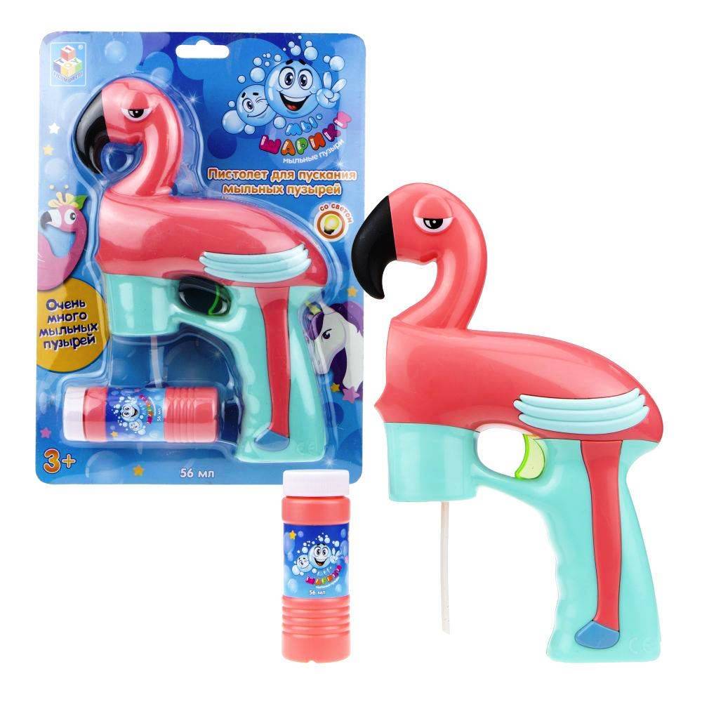 Мы-шарики.Т17281 Мыльные пузыри с пистолетом "Фламинго" свет 56 мл., на батар. блистер