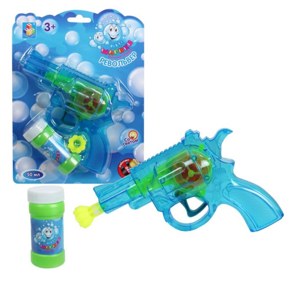 Мы-шарики.Т58740 Мыльные пузыри с пистолетом механич. "Револьвер" бут. 50 мл, цвет в ассорт.