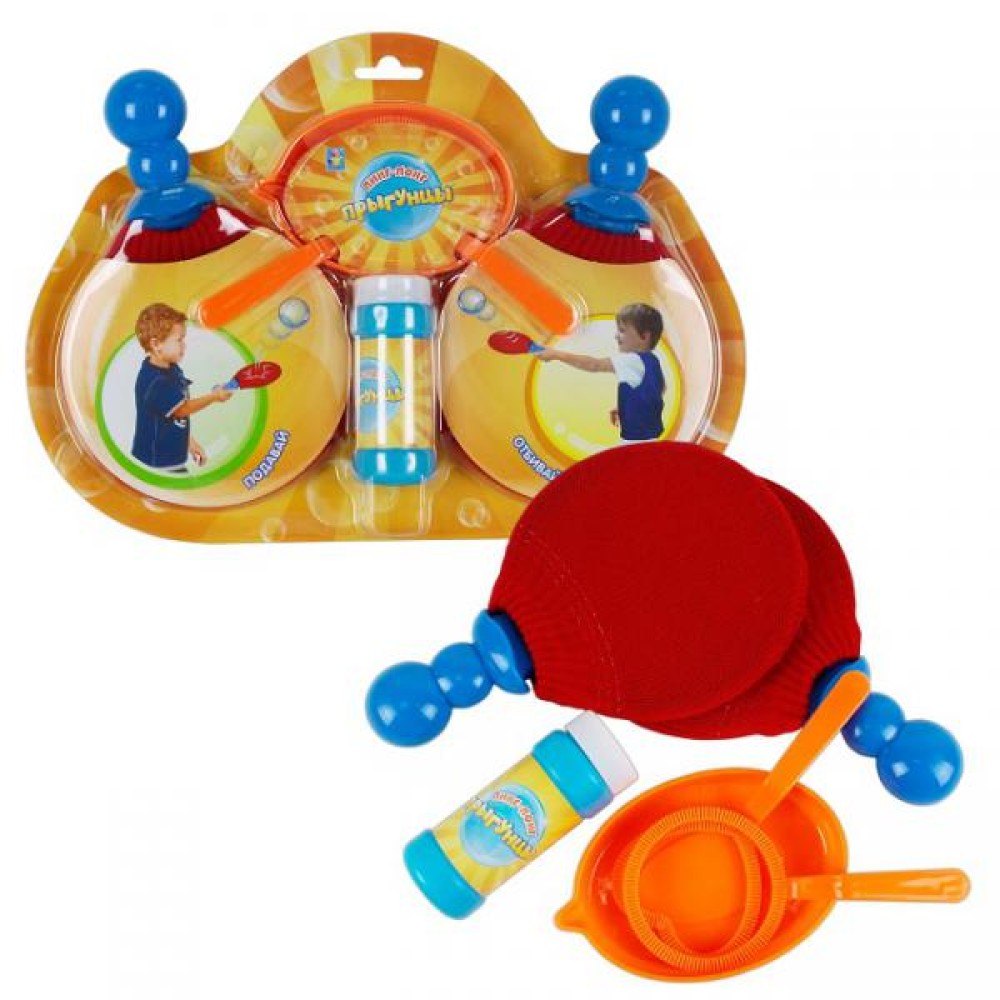 Мыльные пузыри арт.Т11537 "Пинг-Понг Прыгунцы" (2 ракетки, 2 венчика, лоток, бут.50мл) блистер /72