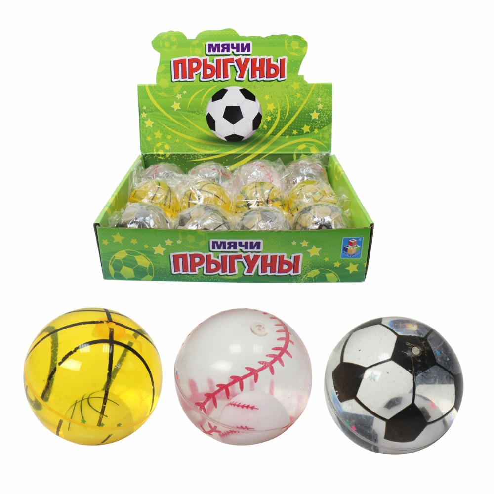 Прыгуны мячи прозрачный с водой "Спорт" светится 6,5 см арт.Т15230