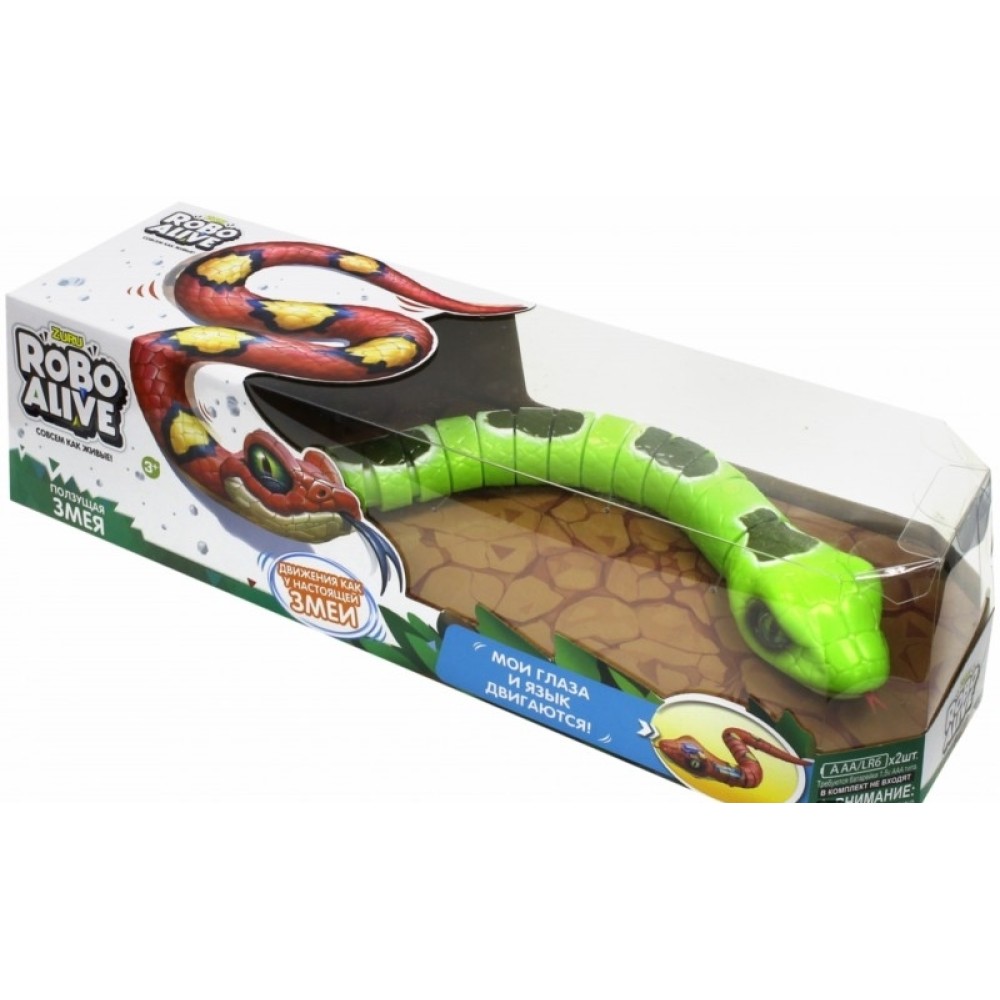 RoboAlive. Робо-змея (Зеленая), 2 *1,5vAAА бат (в компл не входят) 40*13*10см арт.Т10995