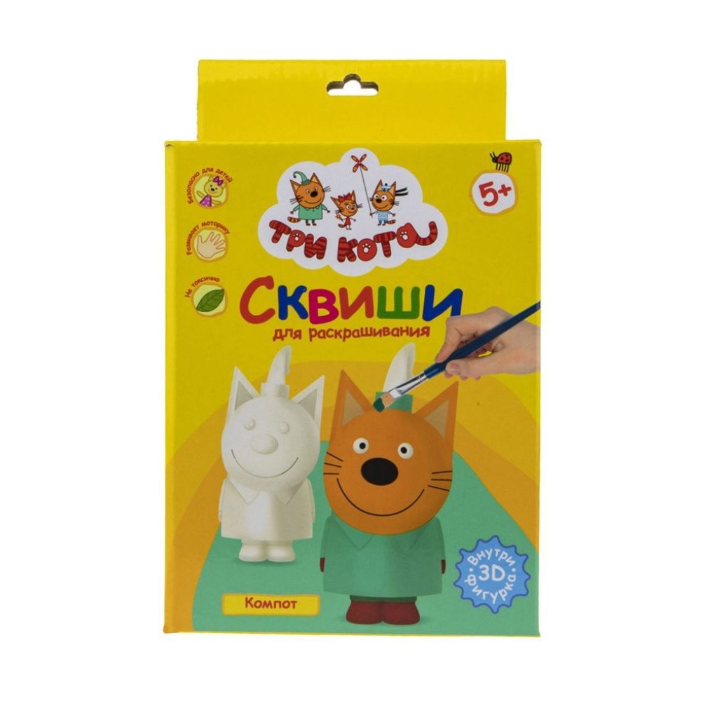 Сквиши. Набор для раскрашивания "Три кота. Компот" в коробке с европодвесом арт.Т18098