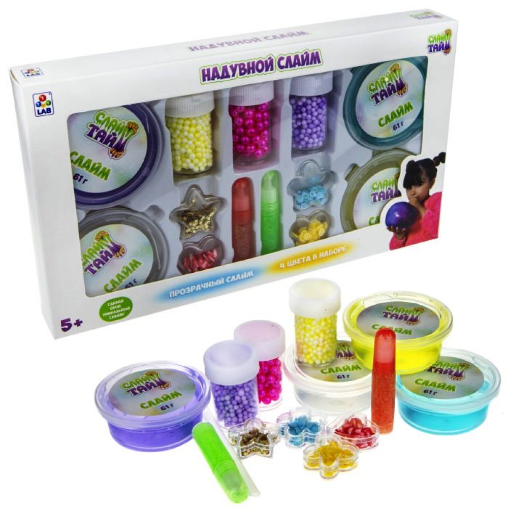 Слайм тайм. Набор надувного слайма (4 вида) с украш.арт.Т17645