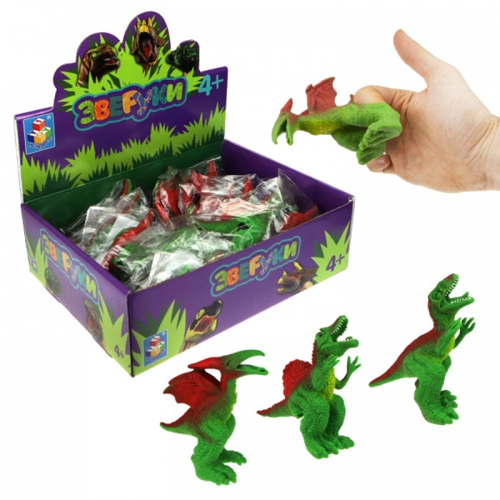 Зверуки. Ходячие динозавры на пальцы 4 вида (поштучно) в боксе 12 шт арт.Т19334
