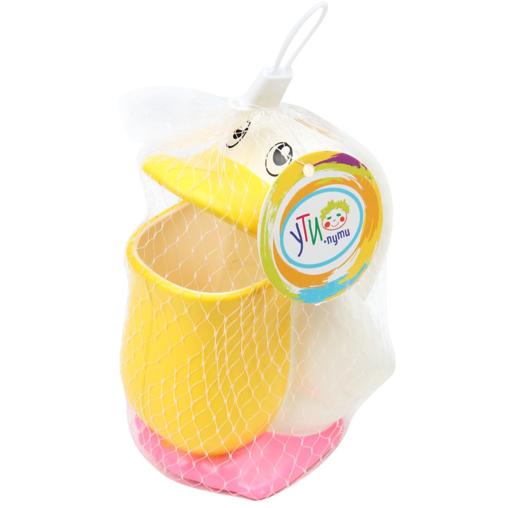 УтиПути. Игрушка для купания "Пеликан-лейка" белая/желтая, арт.78183/61551 (в сетке) 8х8х14 см,
