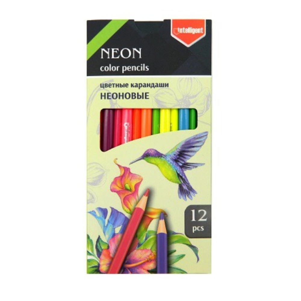 Intelligent. Карандаши 12 цв. "Неоновые" трехгранные, деревянные, заточенные, в кор арт.CD-7003