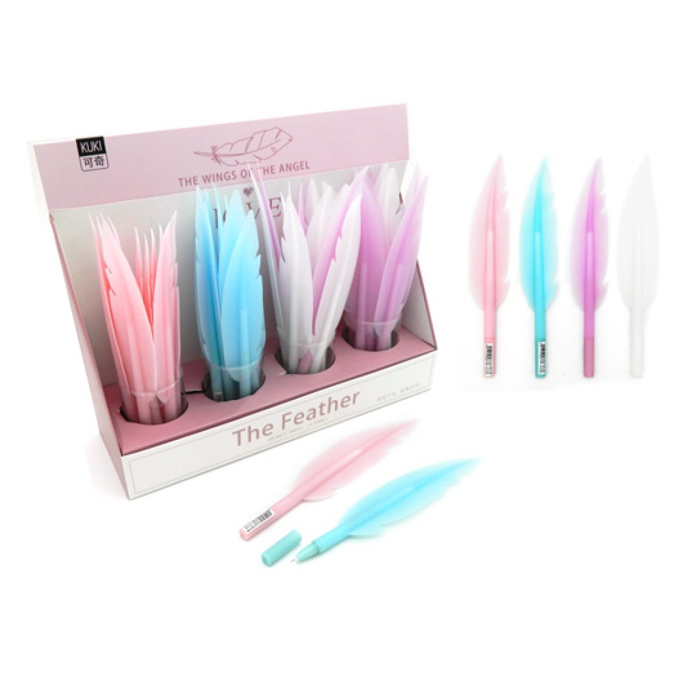 Intelligent. Ручка фигурная гелевая арт.KK-6877 "Перо" (черн) прорезиненный корпус, цвета в ас-те