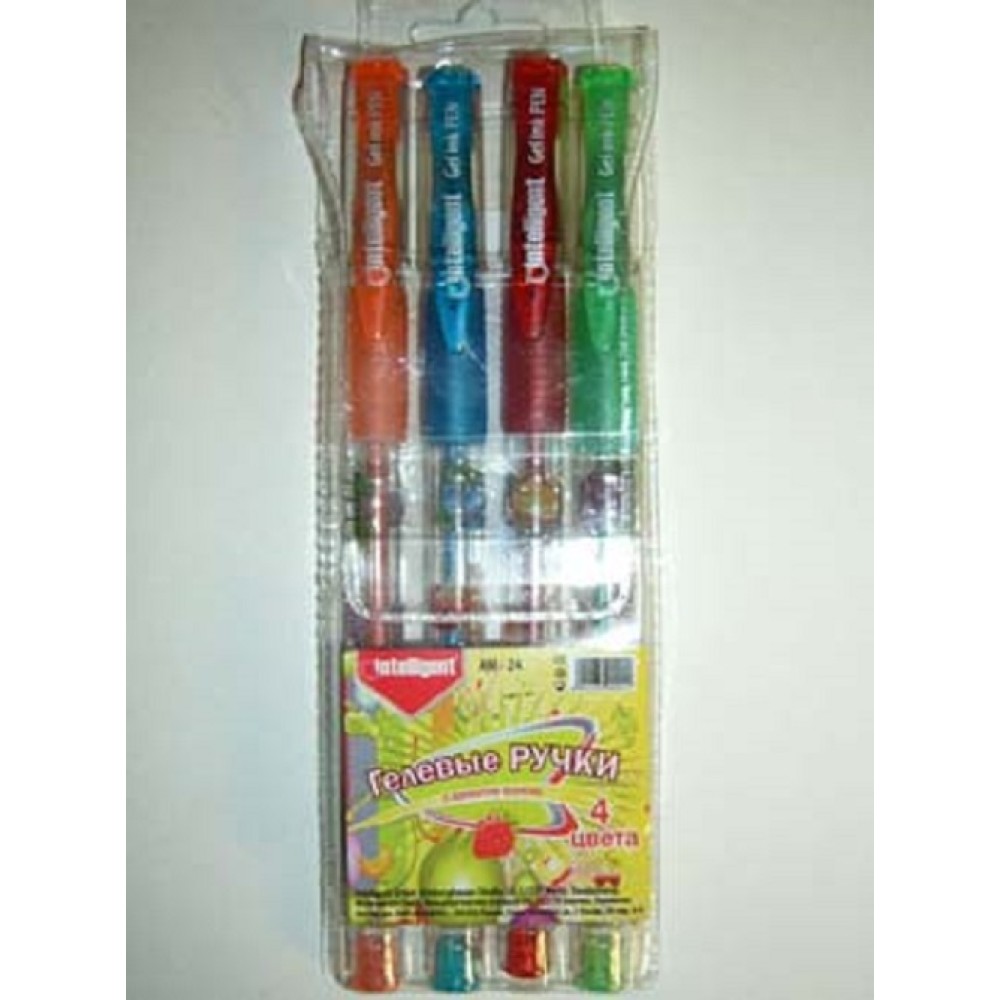 Intelligent. Ручки гелевые набор 4 цв. с блестками ароматизированные арт. АЕ-77 / АМ-24