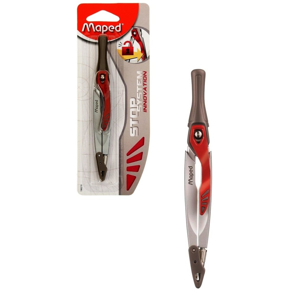 Maped. Циркуль из цинкового сплава "Stop system innovation" с грифелем на блист. арт.196210
