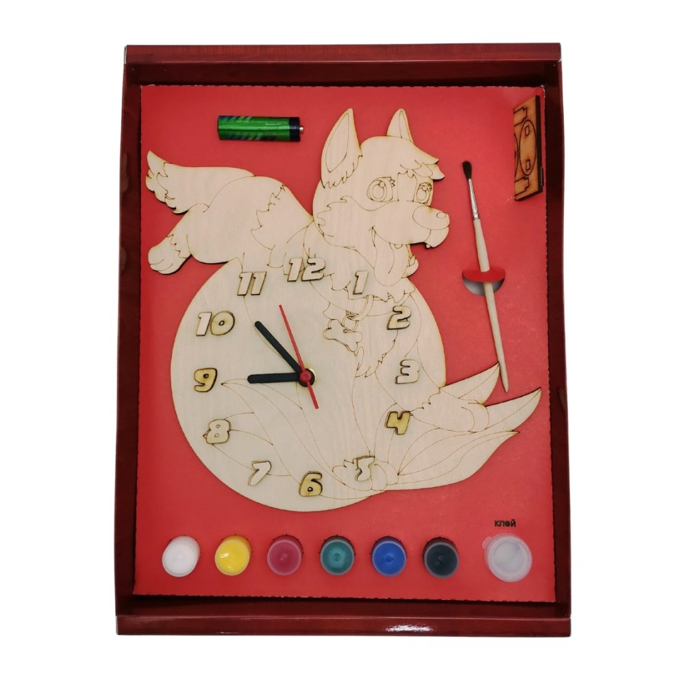 Часы с циферблатом под роспись "Барбос-чемпион" с красками арт.ДНИ139