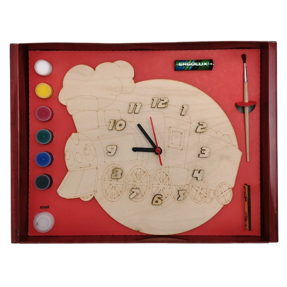 Часы с циферблатом под роспись "Чудо-поезд" с красками арт.ДНИ137