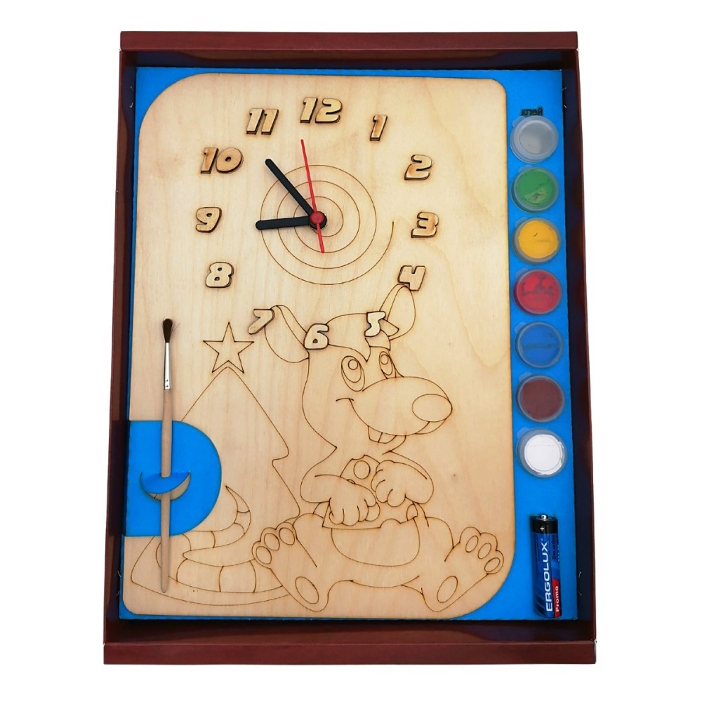 Часы с циферблатом под роспись "Крысенок" с красками арт.8096