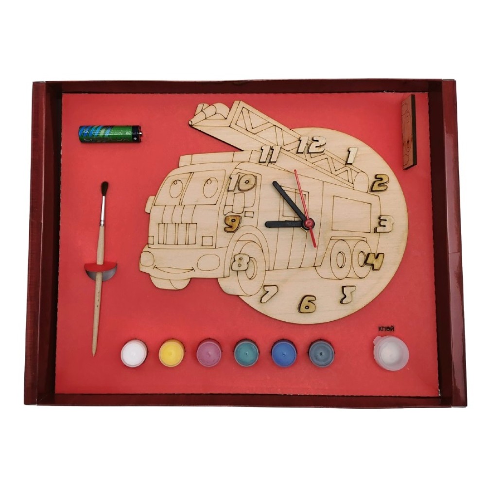 Часы с циферблатом под роспись "Машина пожарная" с красками арт.ДНИ130