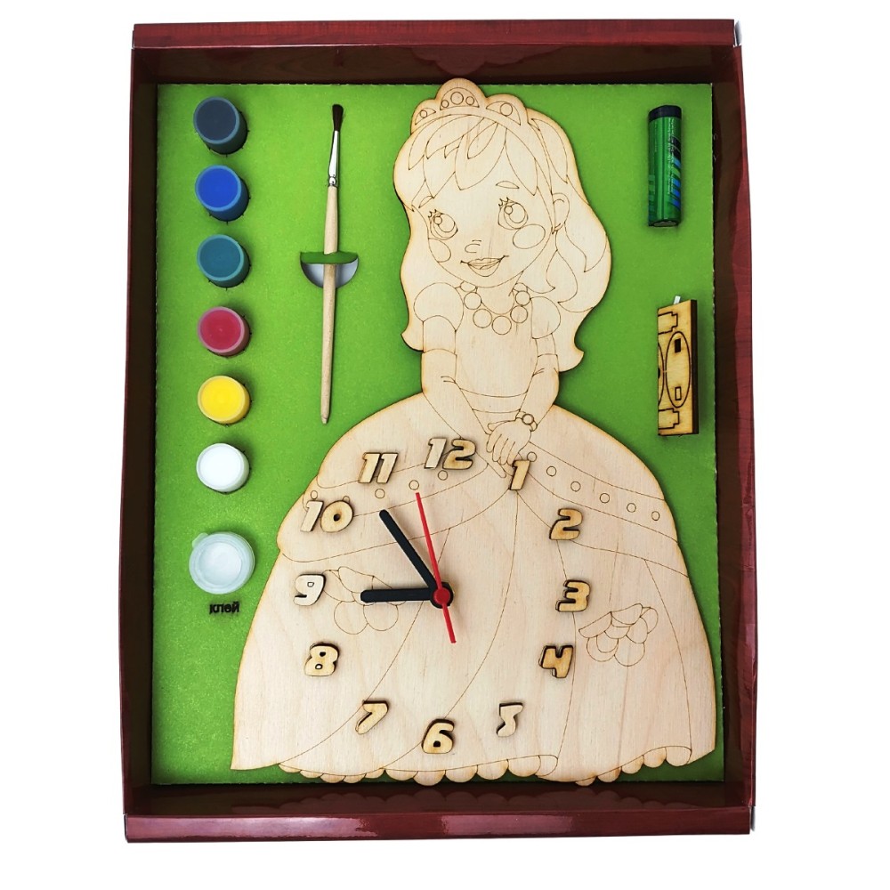 Часы с циферблатом под роспись "Принцесса" с красками арт.ДНИ136