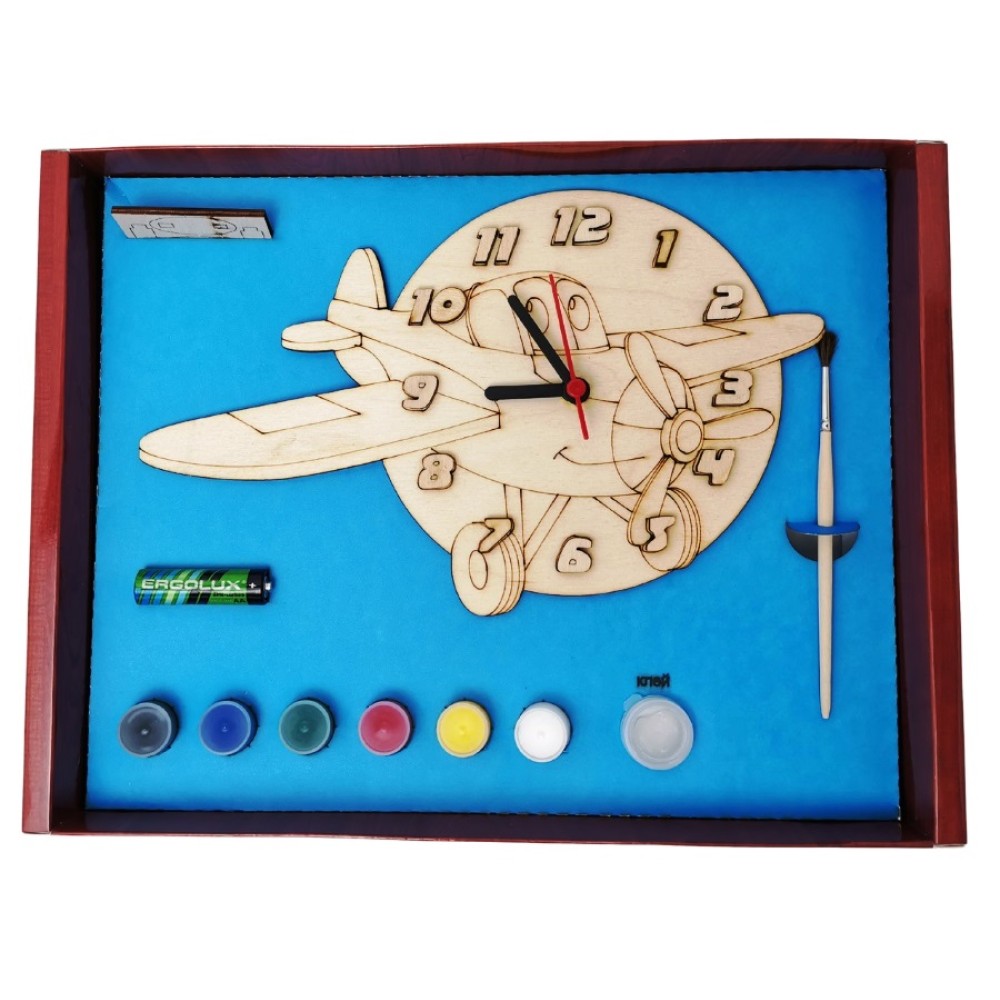 Часы с циферблатом под роспись "Самолет" с красками арт.ДНИ131