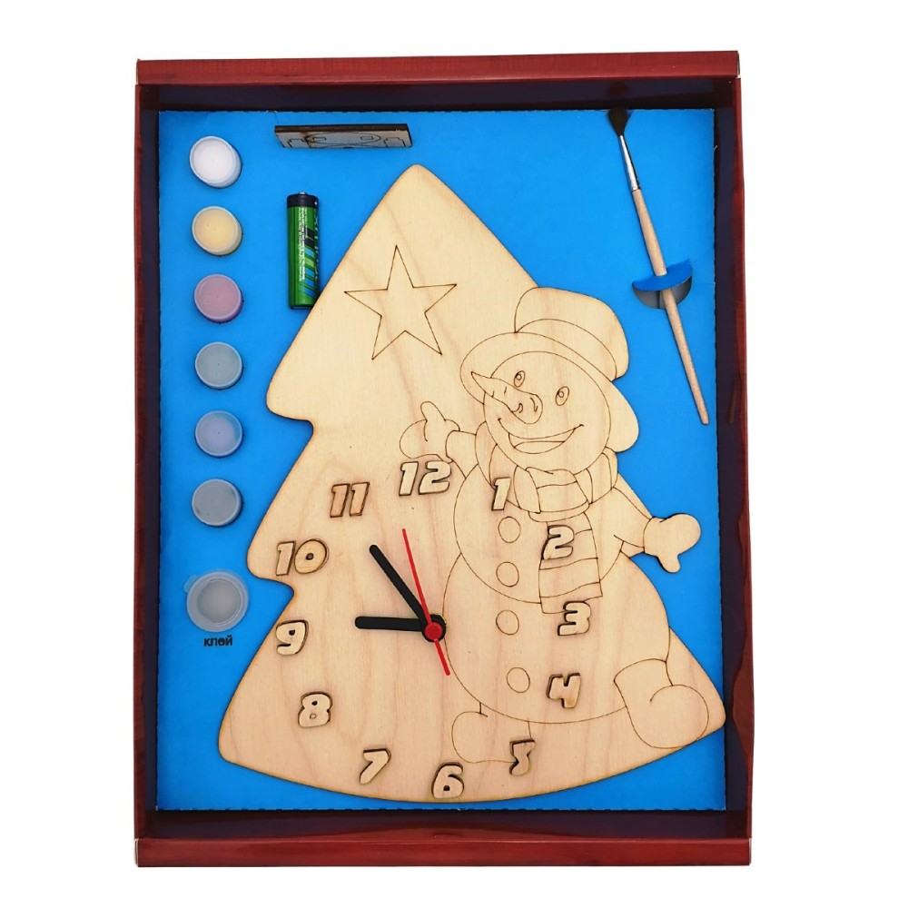 Часы с циферблатом под роспись "Снеговик" с красками арт.8097/20