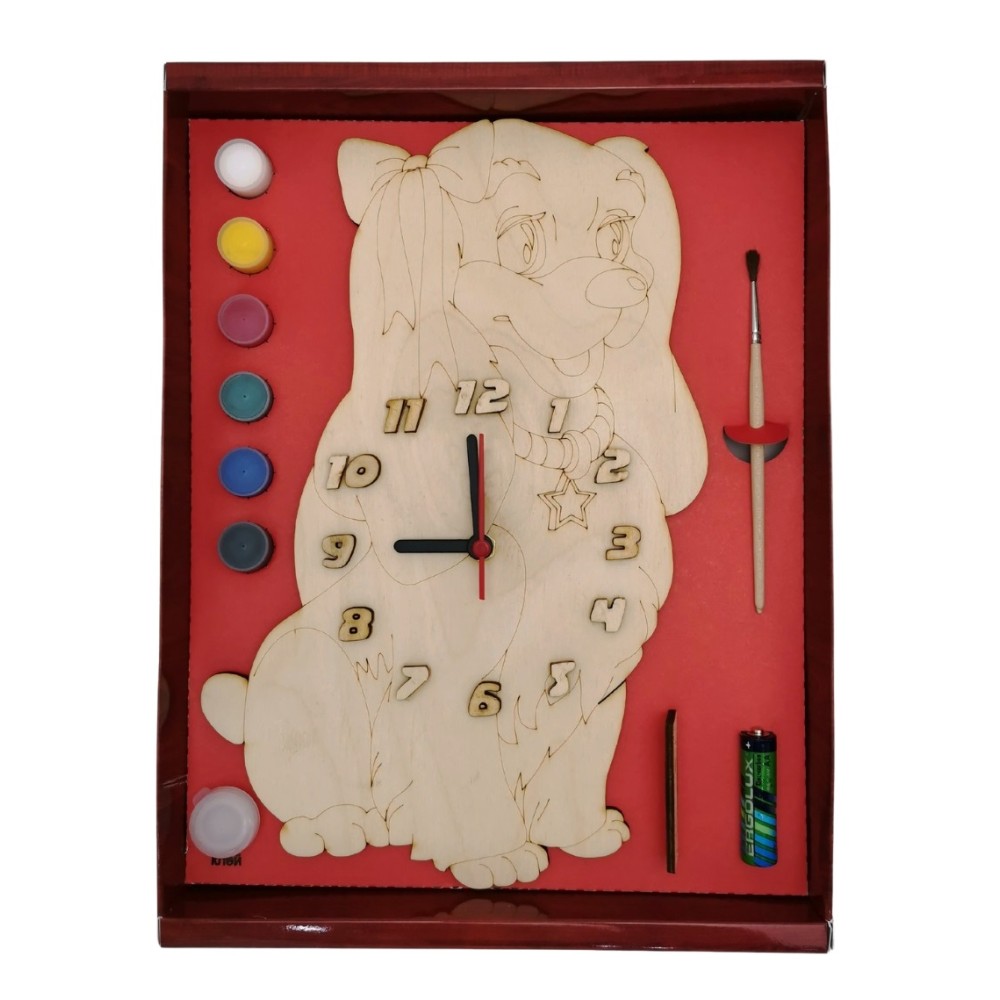 Часы с циферблатом под роспись "Собачка Леди" с красками арт.ДНИ134