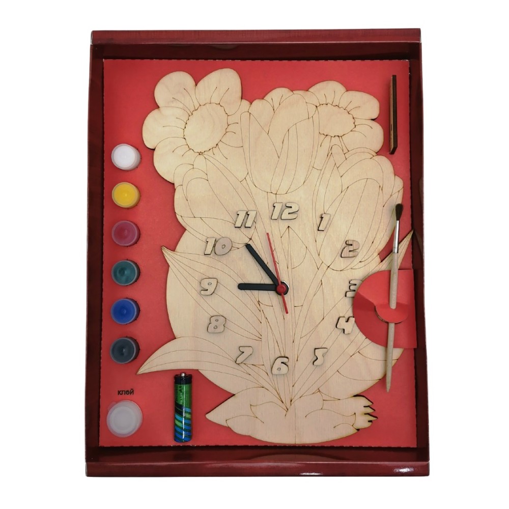 Часы с циферблатом под роспись "Весенний букет" с красками арт.ДНИ138