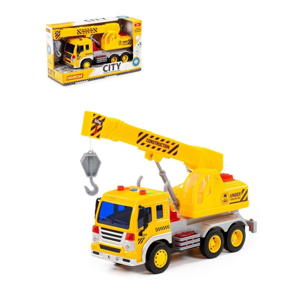 Полесье. Автомобиль инерционный "Сити" кран свет, звук (жёлтый) (в коробке) арт.86532/8