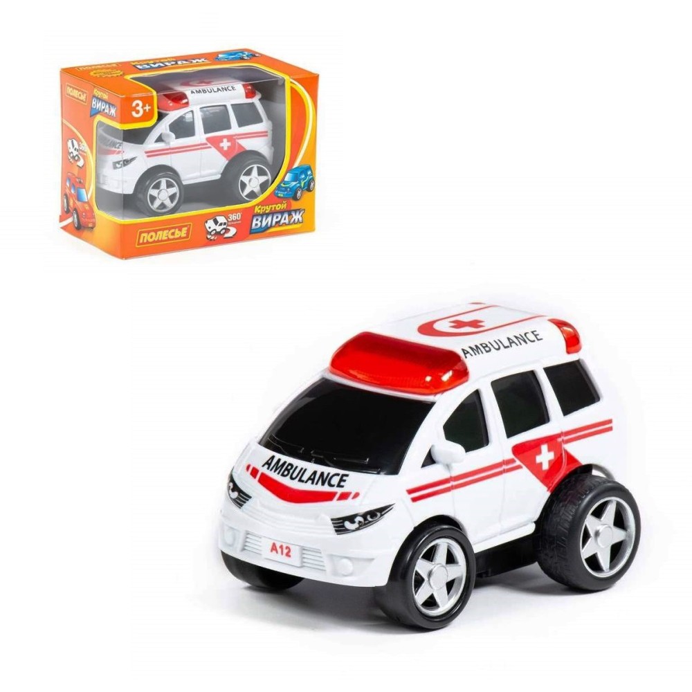 Полесье. Автомобиль инерционный скорая помощь "Крутой Вираж" (в коробке) арт.78896