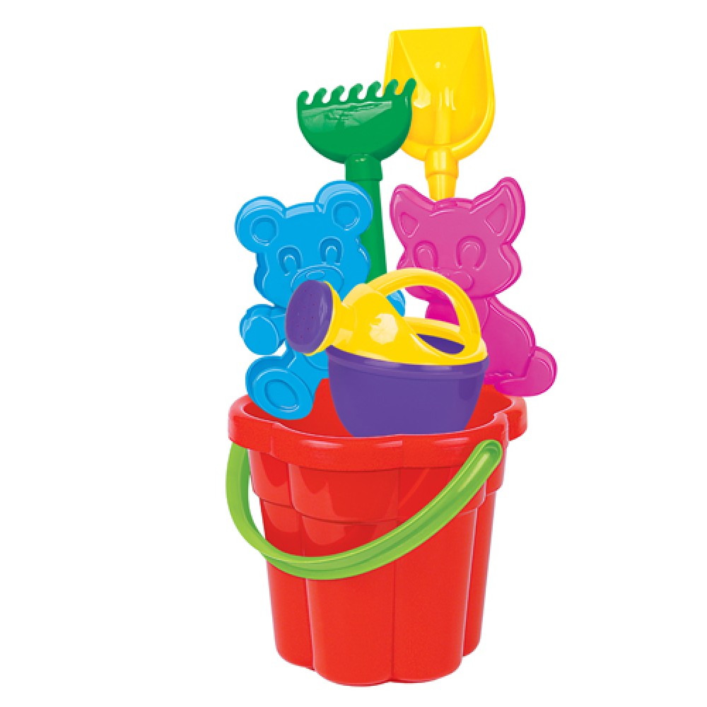 Полесье. Песочный набор №166 (ведро-цветок бол.,лопатка,грабли,2 форм,лейка) арт.4986 /21