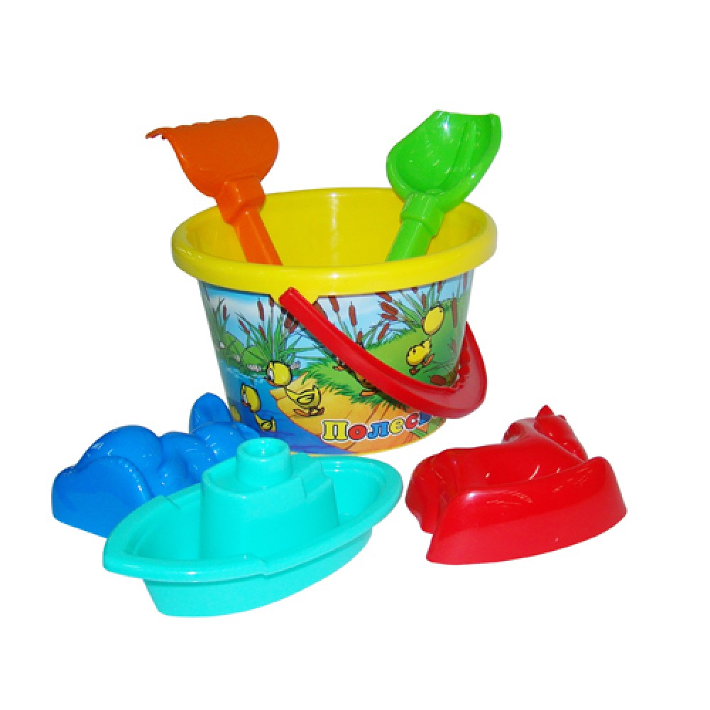 Полесье. Песочный набор №251 (ведро среднее,совок,грабельки,2 форм,кораблик "Юнга") арт.3536 /21