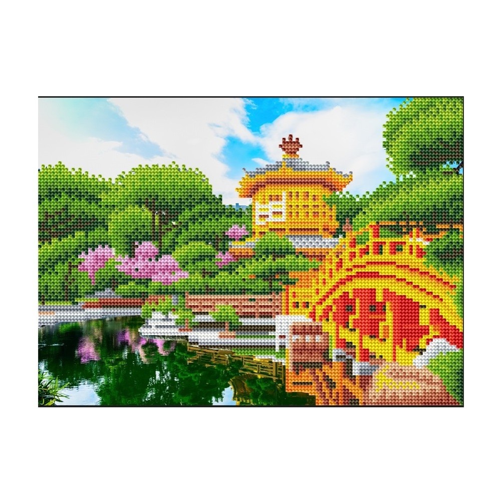 Рыжий кот. Алмаз. мозаика ACH032 30х40 см, с подр. с част. заполн. (23цв.) "Восточный дом у воды"