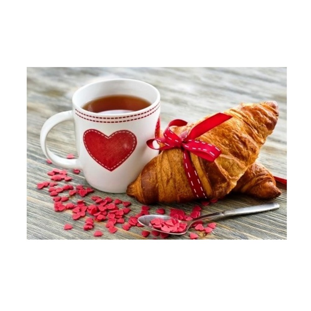 Рыжий кот. Холст 22х30 арт.HS295 с красками по номерам "Композиция с круассаном"