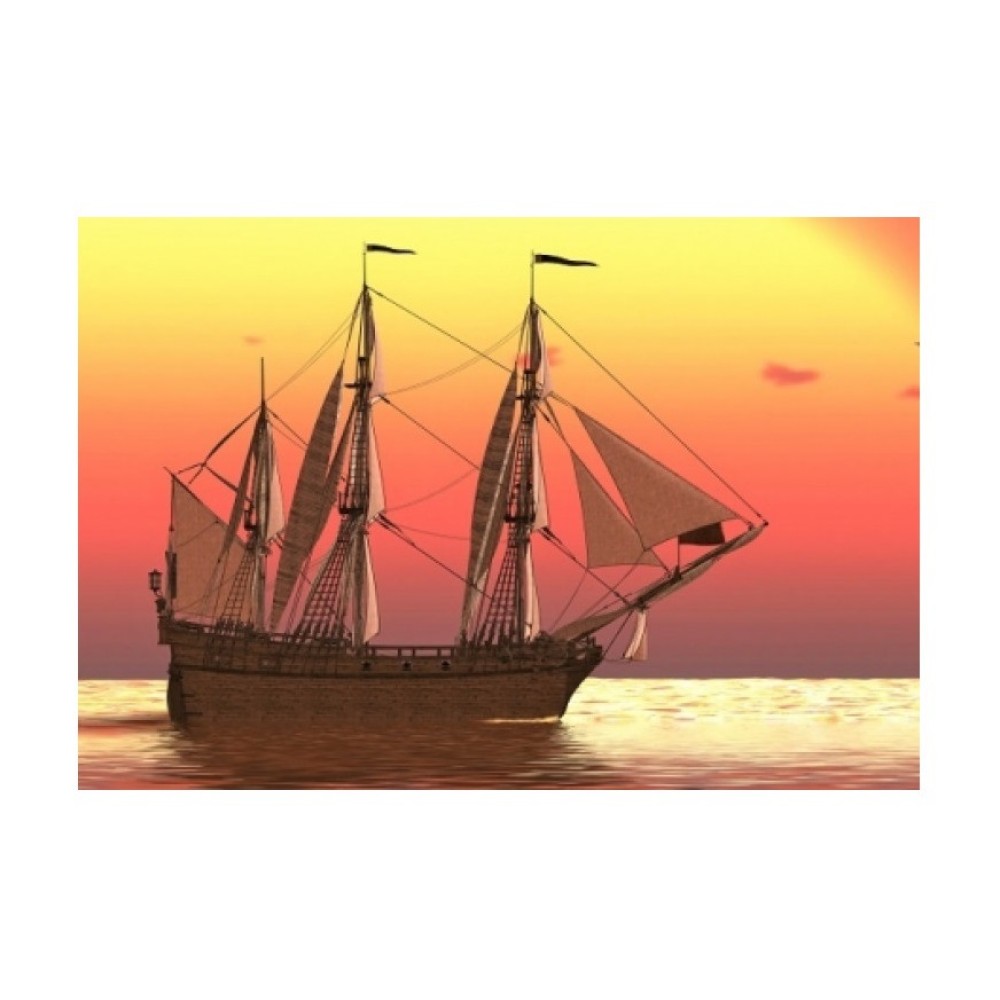 Рыжий кот. Холст 22х30 арт.HS344 с красками по номерам "Корабль в лучах заходящего солнца"