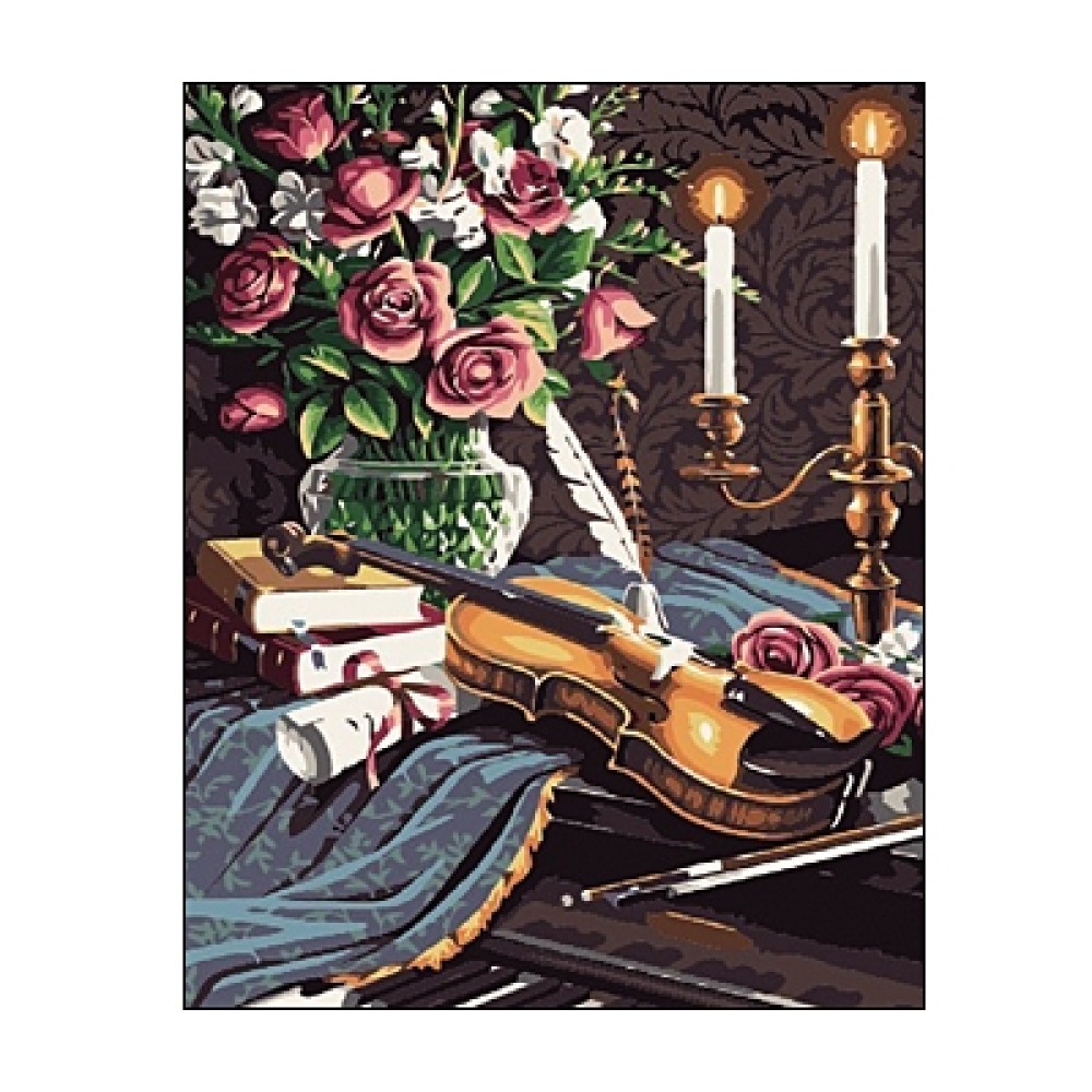 Рыжий кот. Холст 40х50 арт.TY023 с красками по номерам "Цветы и скрипка"