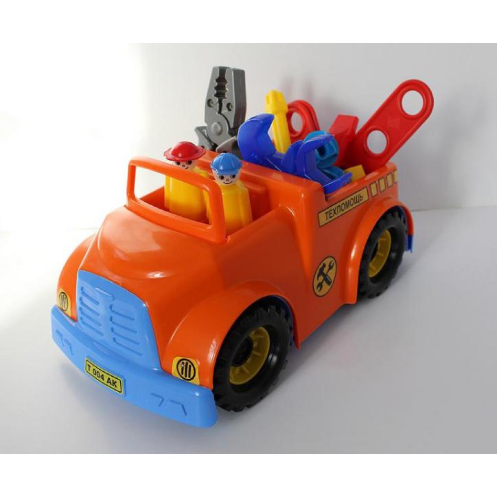 Совтехстром.Автомобиль "Техпомощь" арт.У820(2 фигур,плоскогубцы,отверт,ключ,пластина,болт,гайка) /12