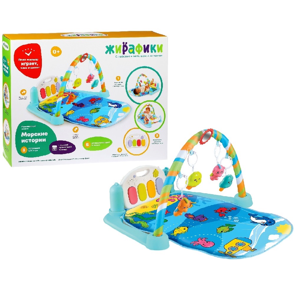 Жирафики.642627 Развивающий коврик "Морские истории" с муз. панелью: игровой дизайн 5 съем. игрушек,