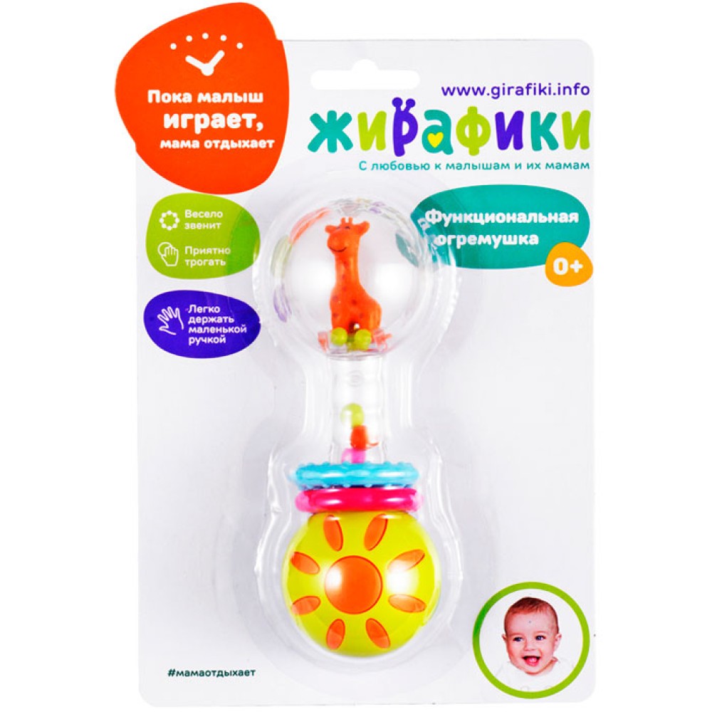 Жирафики.939634 Функциональная погремушка "Звонкая гантелька. Жирафик"