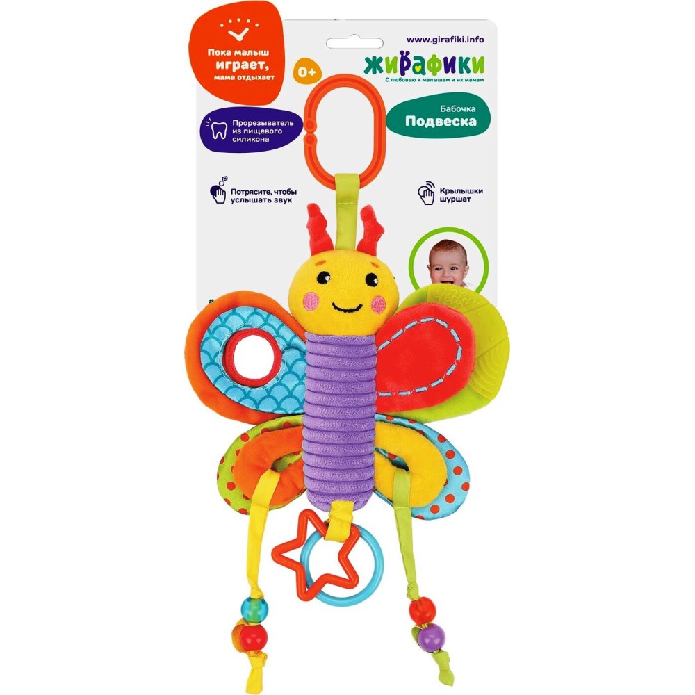 Жирафики.939721 Функциональная подвеска с мягким прорезывателем шуршалкой "Бабочка"