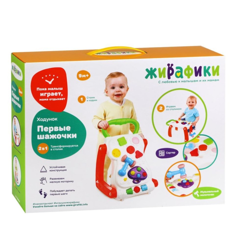 Жирафики.939824 Каталка-ходунок "Первые шажочки" с муз. молоточком, 3AG13 включ.