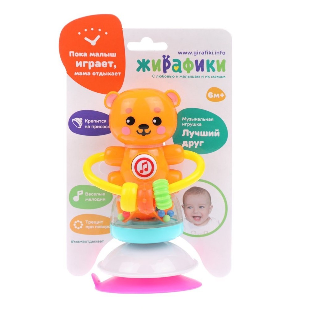 Жирафики.939837 Музыкальная игрушка "Лучший друг. Мишка" на присоске с музыкой, гремит,