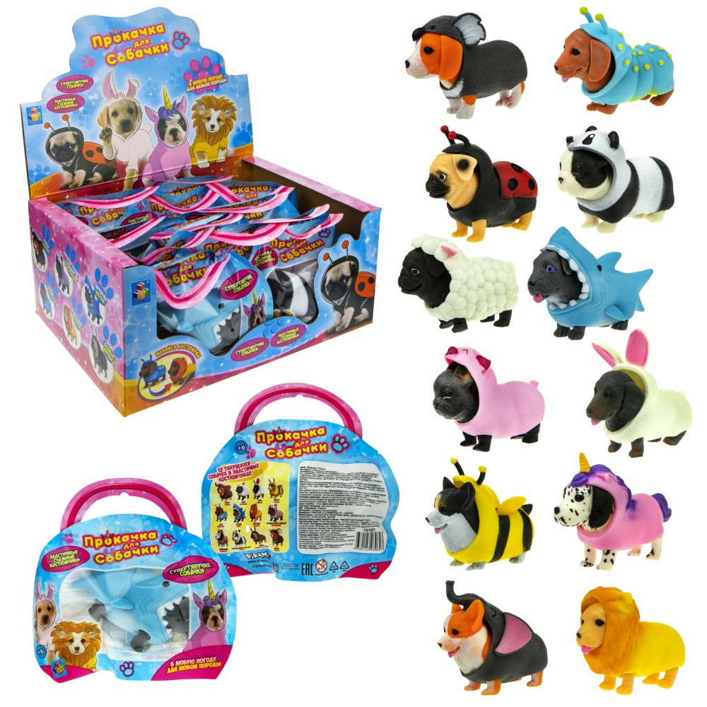 Прокачка для собачки. "Тянущиеся собачки в костюмчиках" 10см, 12 видов, в пакет арт.Т21921